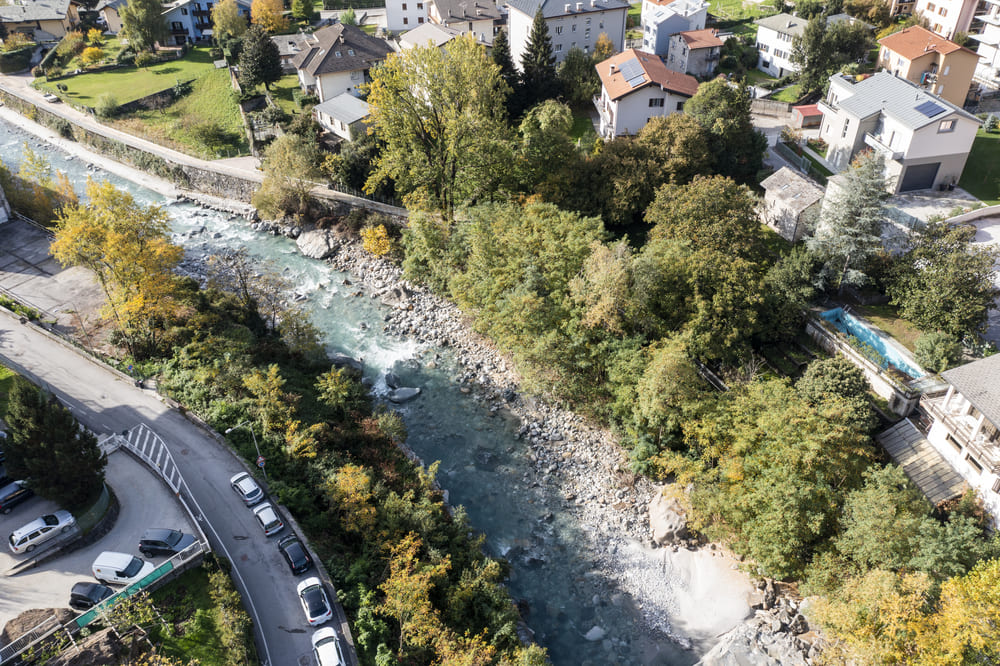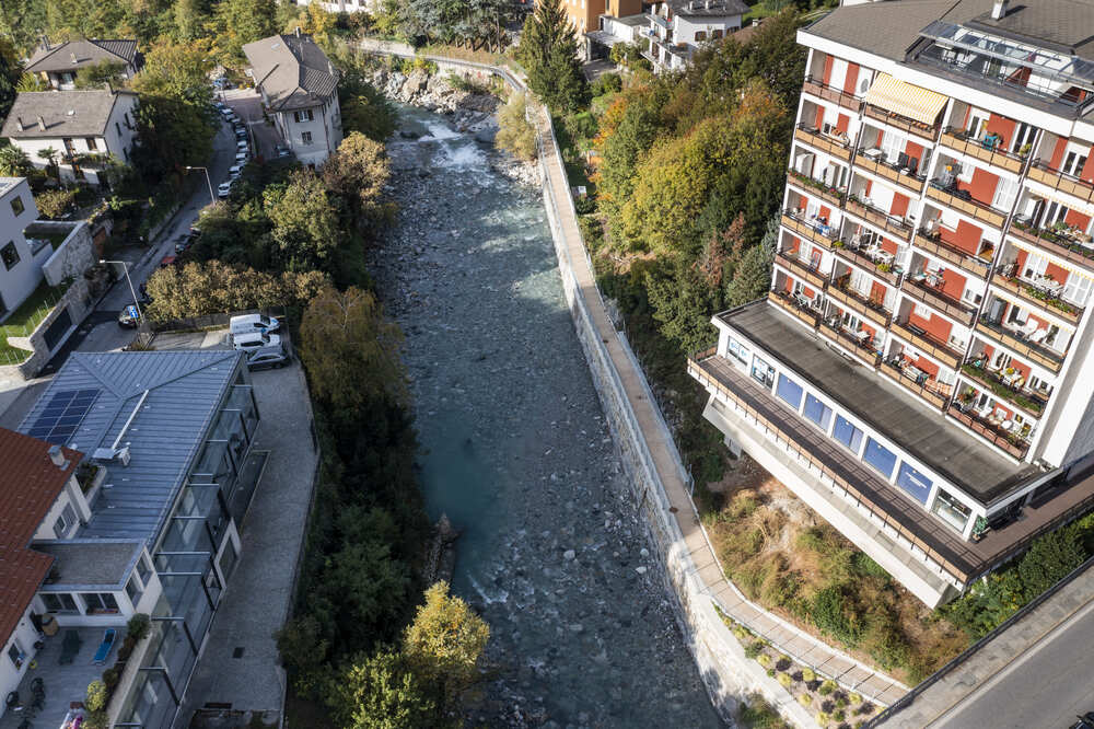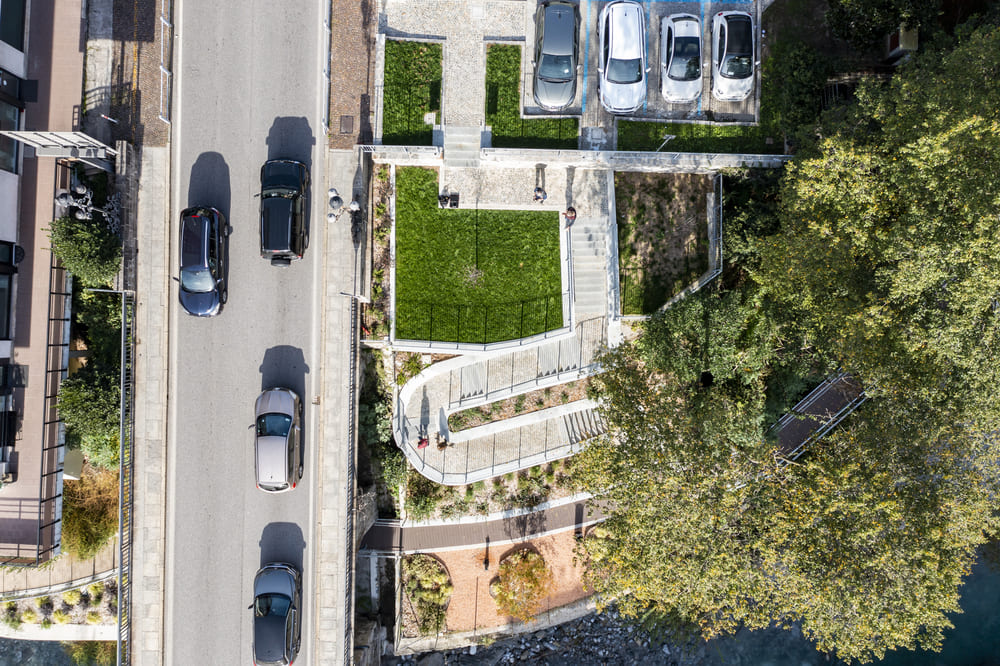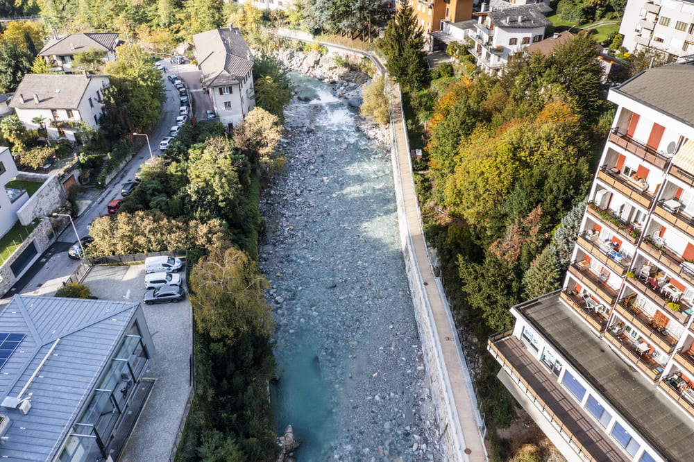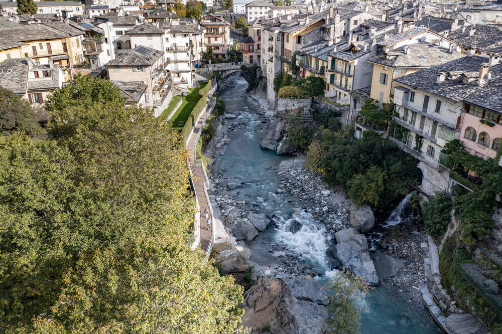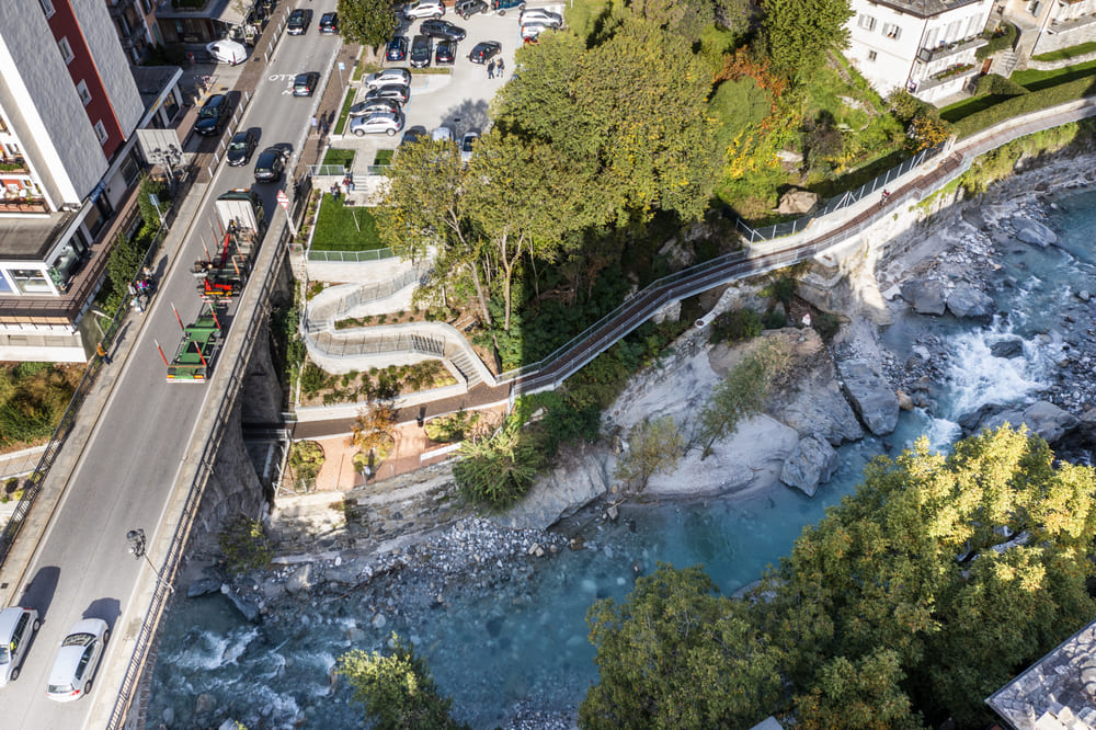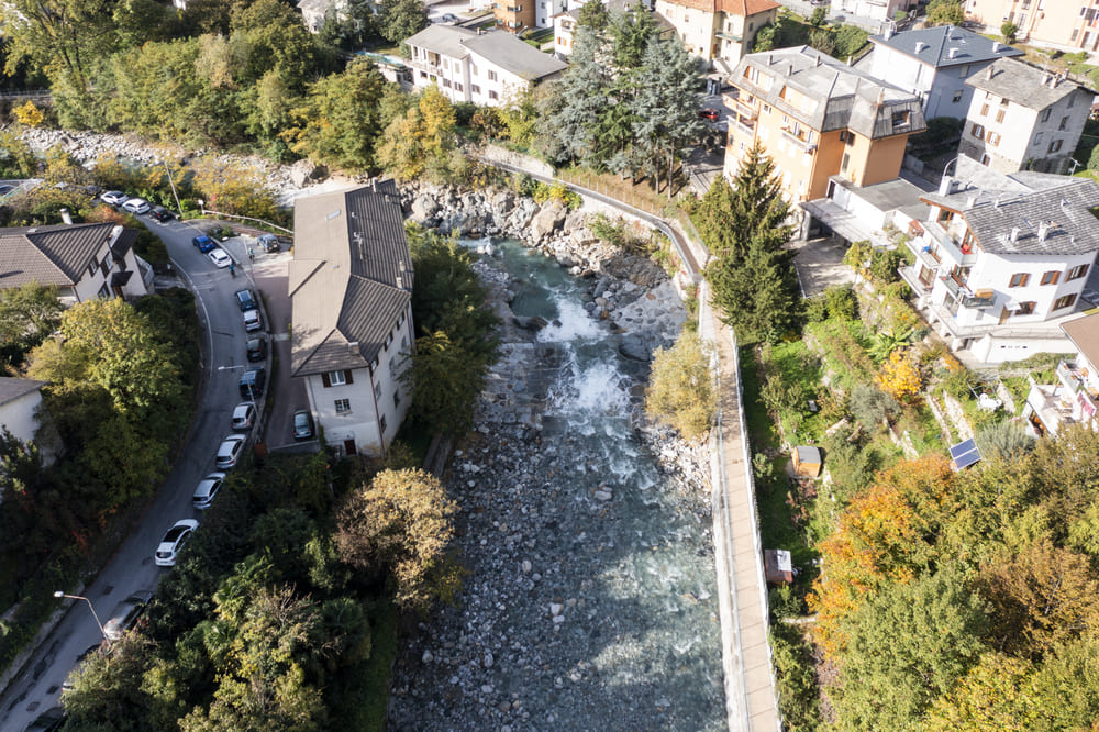 A Chiavenna, in provincia di Sondrio, TGA Costruzioni ha realizzato il nuovo tratto pedonale lungo il fiume Mera e il collegamento dei tre ponti, con muretti di collegamento tra il parcheggio del campo sportivo e il centro città, scale e pavimentazione in pietra di Luserna.